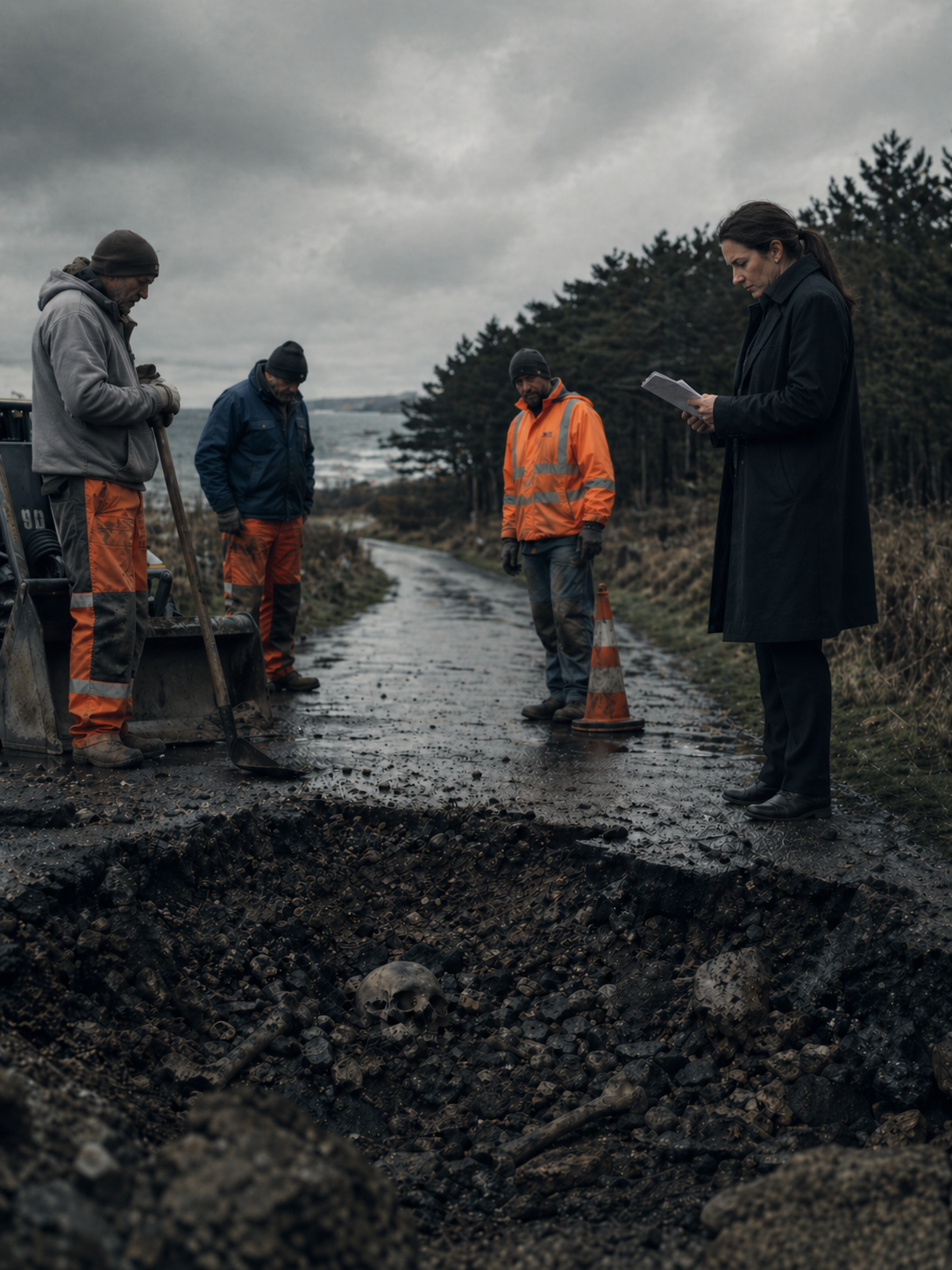 A road crew repairing potholes in a Breton village finds human remains in the aggregate.